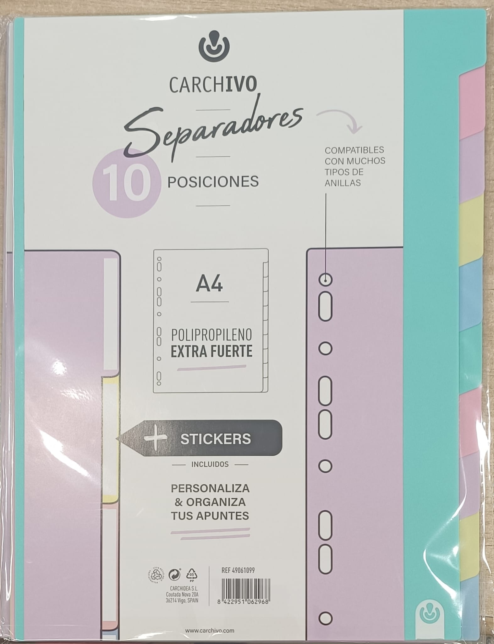 Juego separadores 10 posiciones, polipropileno Extra fuerte A4, multitaladro.