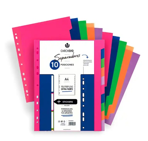Juego separadores 10 posiciones, polipropileno Extra fuerte A4, multitaladro.