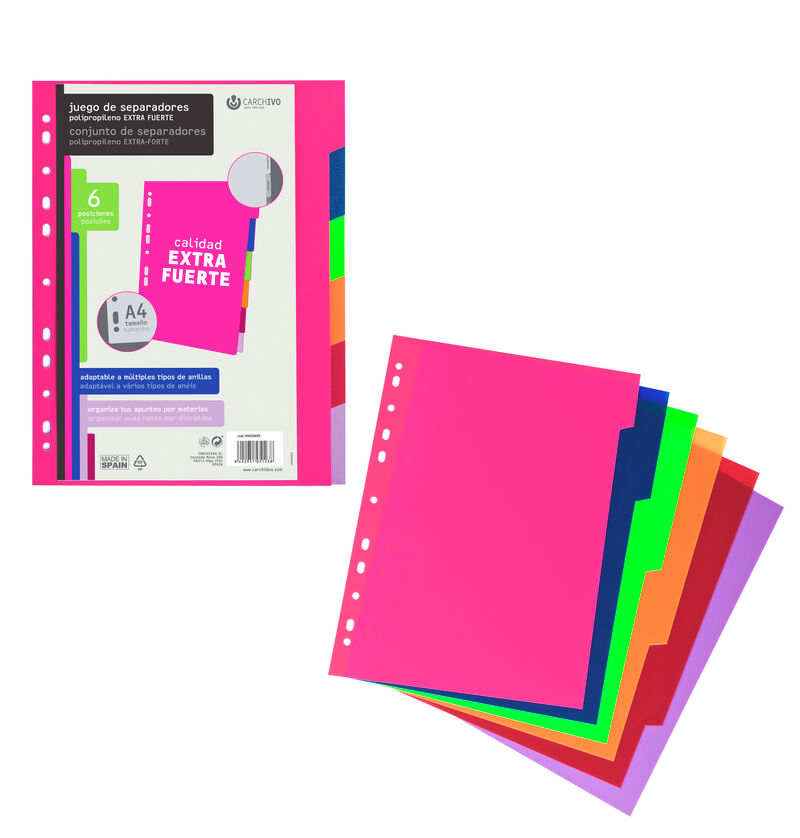 6 SEPARADORES EXTRA FUERTES CARCHIVO colores vivos