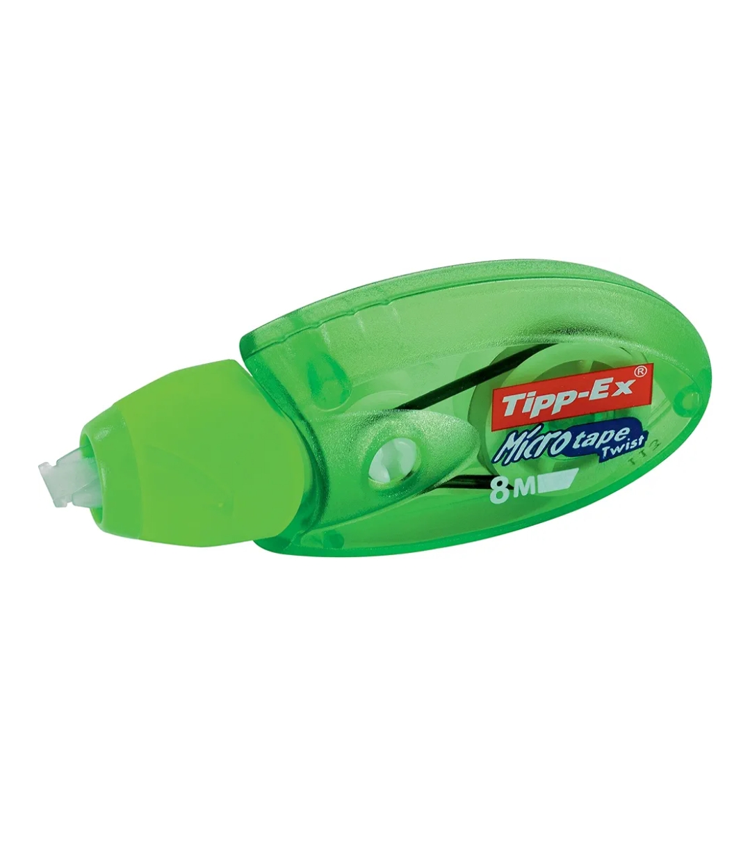 El TIPP-EX Micro Tape Twist es un corrector en cinta diseñado para ofrecer una solución rápida y eficiente para corregir errores en documentos escritos tanto a mano como a máquina. Este modelo se destaca por su formato compacto y su innovador mecanismo de protección.