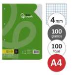 Inicio papel A4 RECAMBIO A4 puntas redondeadas CUADRO 4×4, 100gr, 100h