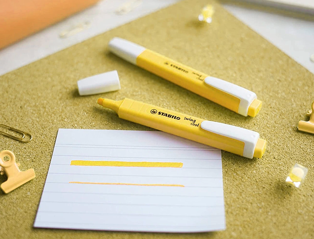 escubre la precisión y elegancia del rotulador fluorescente fino Swing Cool Pastel en amarillo cremoso de Stabilo. Perfecto para subrayar y marcar con un toque de suavidad en tus documentos y apuntes.
